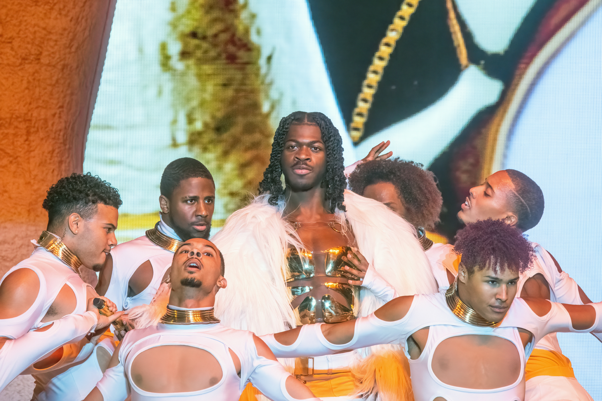 These are the shows of the new Bonnaroo – of-the-moment artists who bring all the young energy, attention and spectacular production. It’s pretty exciting to feel the energy of this kind of crowd, and Lil Nas X was here for it. He made his entrance through an arch in a kind of rock/dental-fixture contraption that filled the whole stage. He was clad in a white fur coat that soon came off to reveal a gold breastplate. He had about 12 dancers, all androgynous males dressed in white booty shorts and sleeveless vests. The choreography and showmanship were impeccable as he played everything you could want to hear, starting with “Monterey,” “Scoop” and “Dead Right Now.” The issue with this sort of show is that there is no room for improvisation or surprise, but if you just want to see X do his thing, I can’t imagine it gets any better than this. – BF