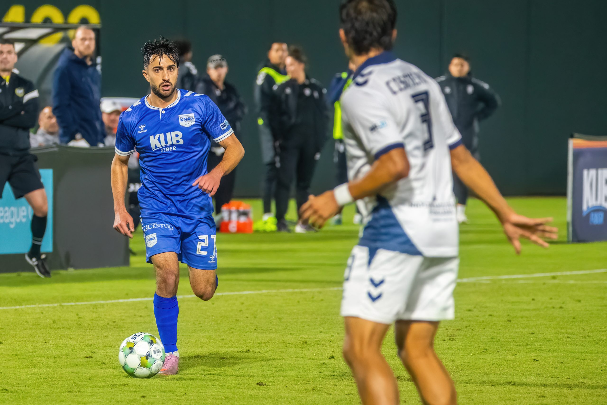Knoxville manager Ian Fuller’s starting 11 has been settled for several weeks now, and those players assimilated into his regular 4-2-3-1 formation. Perhaps taking the previous weekend’s exertions into consideration, Naples coach Matt Poland opted for a moderately more conservative yet interchangeable lineup that included a trio of defensive midfielders in front of a standard back four.